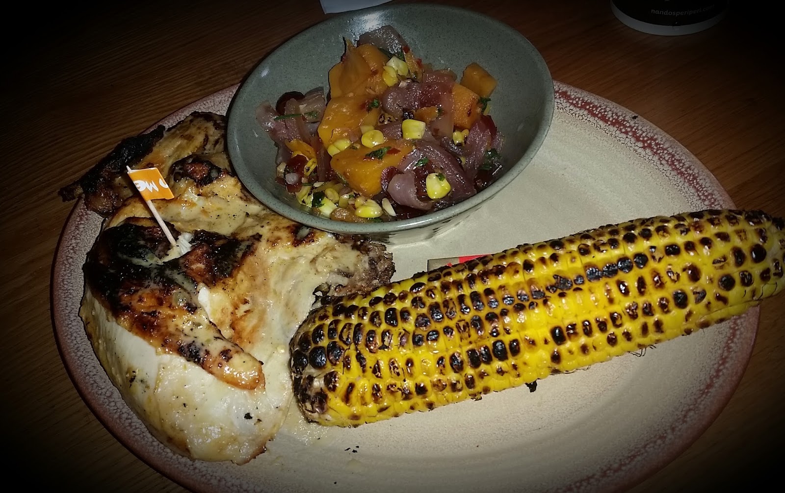 I chose their famous ¼ chicken – breast/wing with flame-grilled corn on the cob and butternut squash medley. You can order their chicken spiced a multitude of different ways so I chose medium. The chicken was outstanding, juicy and grilled perfectly. The corn was charred from the flame grilling, giving it a deep smoky taste and the butternut squash medley packed in red onion, dried cranberries, cilantro and chili. Just a warning, this side is spicy!