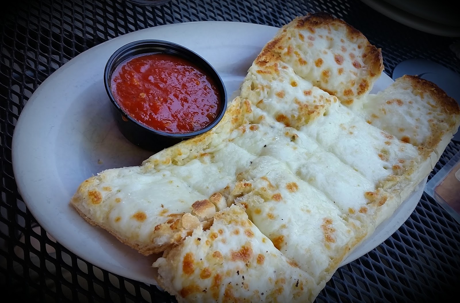 The garlic cheese bread appetizer was cheesy with just the right amount of garlic. It came out fast, the cheese bubbling and gooey, and browned to perfection.