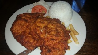 Dora here. The Milanesa de Pollo…Yum! The fried chicken breast, tender and moist, takes up plenty of real estate on this plate, doesn’t it? I didn’t touch the fries, tucked under the chicken, and only nibbled on the rice because I ate every bite of that juicy chicken! Even if they served gravy or butter and brown sugar on their rice like I prefer, I probably would’ve skipped it in lieu of the chicken. Delish!