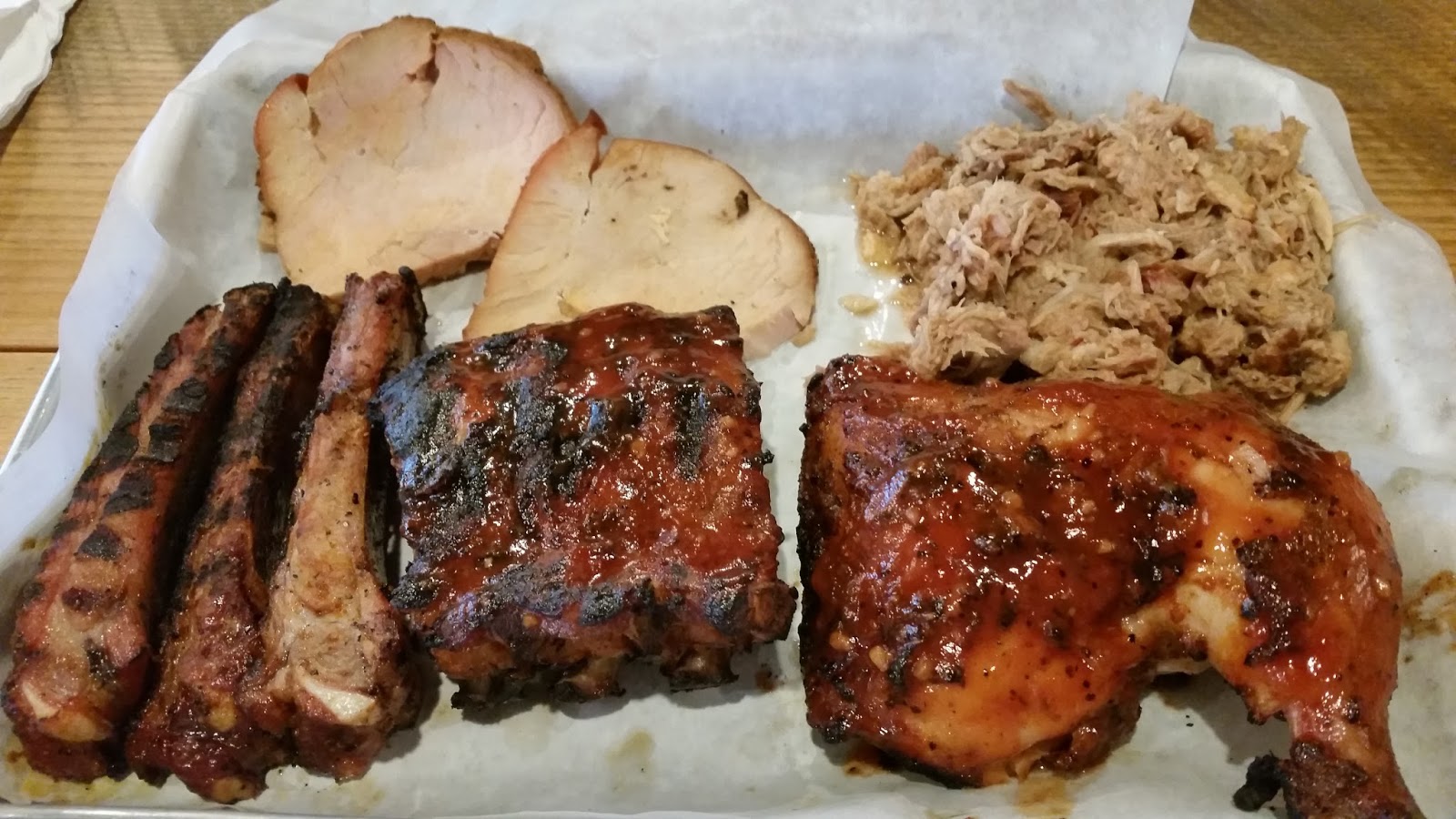 Dora here. Delish!! We could’ve eaten for two days on this meal! The baby backs were killer, but I’m not a fan of St. Louis style ribs, so Ernie got lucky. I ate most of the turkey myself, so I was glad hubby thought it dry. lol. Love the zing that hit going down with the pork. If we lived here, we’d be a weekly visitor. Probably more than that in the winter because I’d order a whole bowl of the Brunswick stew on the off days.