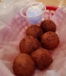 We opted to try a few menu items and share: Brunswick stew, hush puppies and honey butter, and Carolina Classic Nachos.