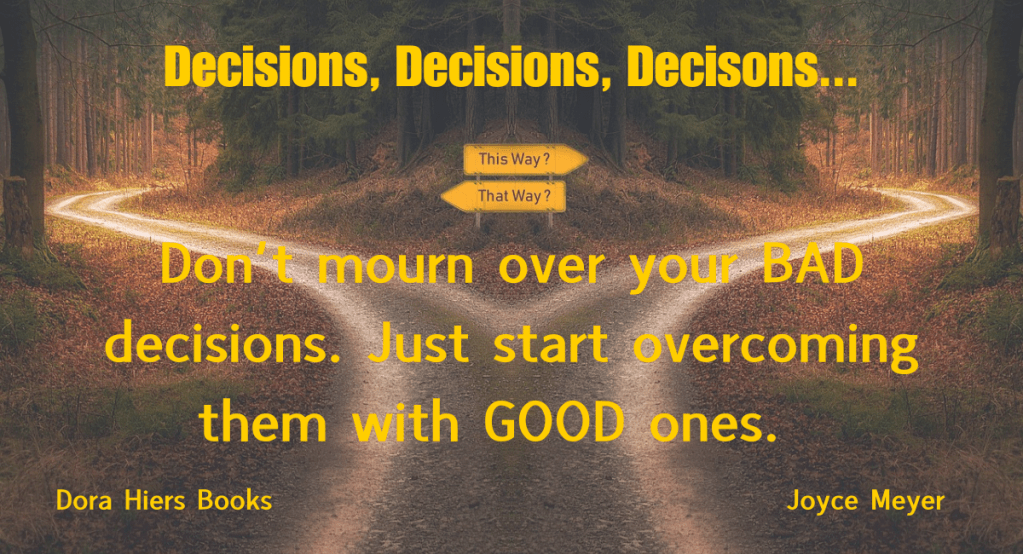 Decisions … August 27, 2025November 5, 2024 / Dora Hiers Share the bloggy love: Click to share on X (Opens in new window) X Click to share on Facebook (Opens in new window) Facebook Click to share on Pinterest (Opens in new window) Pinterest Click to email a link to a friend (Opens in new window) Email Click to print (Opens in new window) Print Like Loading... Related