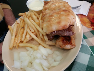 When visiting a new restaurant with food from countries that I am not familiar with, I always like to try a variety of options. So I chose the Mjesano Meso. This Meat Lovers Medley included three pieces of skinless sausage (Cevapi), one thin burger (pljeskavica), one chicken kebab (raznjici), and one piece of spicy sausage, (sudzukice), all served on house-made Bosnian flatbread.